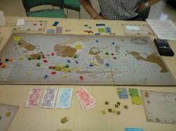 5つのイデオロギーを持った国が世界の覇権をかけて争うゲーム。といっても、カードを使った簡単なシステム。ゆへに油断しているとすぐ決着がついてしまいます。プレイ2回目なのですが、今回はTOP独走を阻止できたため個人的には満足。勝者はイスラム原理主義のK塚さんと、資本主義のA智さん(それぞれの主義はゲーム上のもので、実際の主義とは異なっておりますことを明記します)